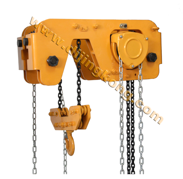其次,“弓”字形低凈空手拉葫蘆的設(shè)計(jì)省去了普通手拉葫蘆吊鉤、機(jī)身的高度,將吊鉤機(jī)身高度重合于小車架,整機(jī)的高度得到了減少,特別適用于高度受限制的場(chǎng)所以及一些比較矮小的廠房。